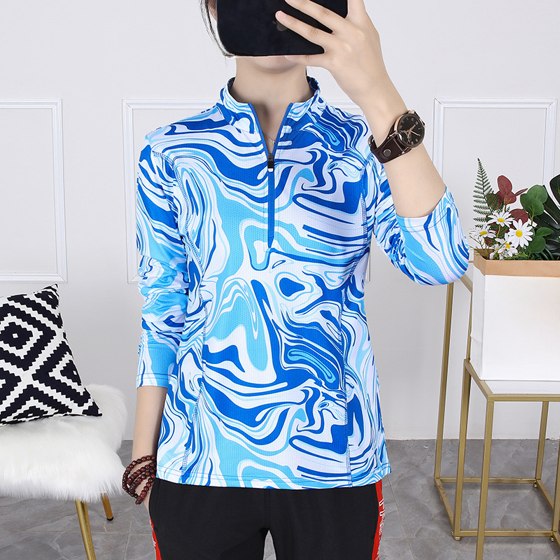 Outdoor Long-sleeved Casual Sports Quick-drying Clothes Camouflage Color T-shirt Women’s Long-sleeved Walking Quick-drying Breathable Sweat-wicking Collar
