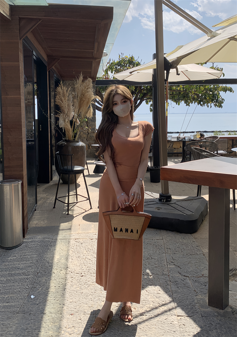 Women’s orange u-neck summer new strap dress