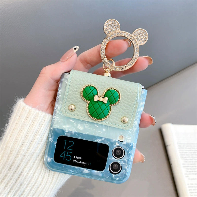 Minnie scalp finger buckle Samsung ZFLIP6 mobile phone case folding screen ZFLIP5 silicone protective cover zflip4 anti -softened shell FLIP3 lightweight handworm W24flip fashion women’s model flip cover