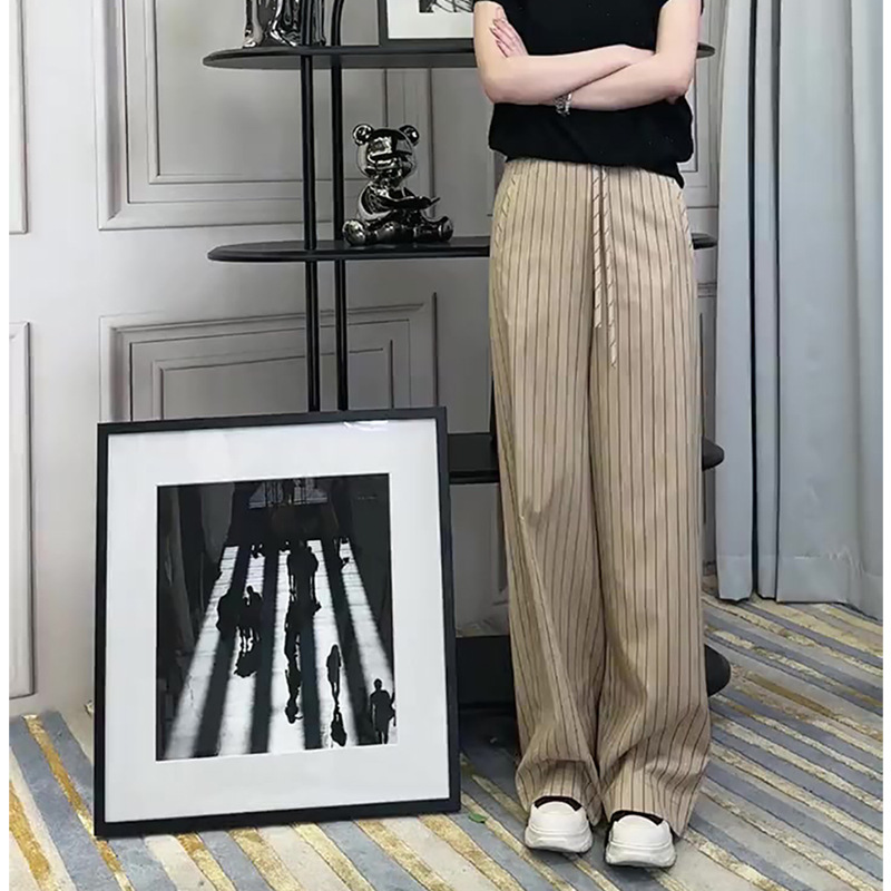 khaki Striped Casual Pants Women’s 2024 Summer New Simple Commuting High Waist Slimming Loose Casual Pants