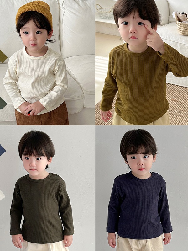 (Shu cotton base) basic all-matching solid color top autumn boys and girls basic all-matching cotton children’s base clothes