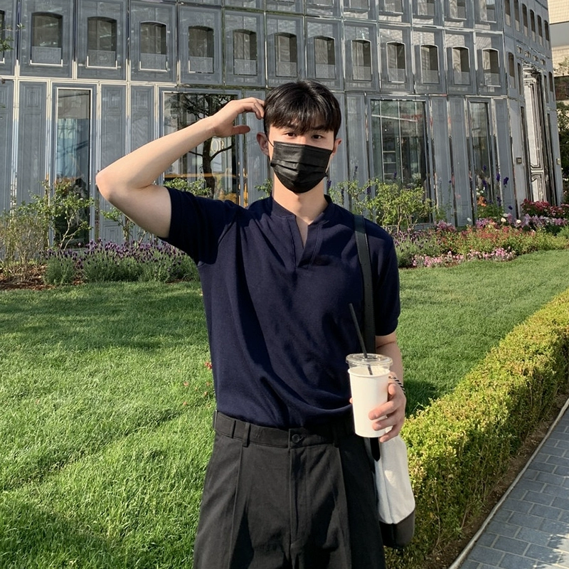 Korean V-neck breathable trendy simple half-sleeved Henry shirt