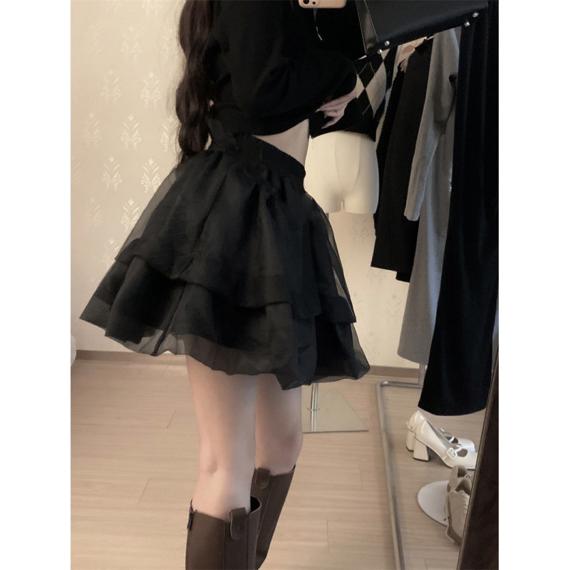 Elegant bubble gauze puffy skirt 2024 summer new Korean simple fashion high waist slimming skirt short skirt
