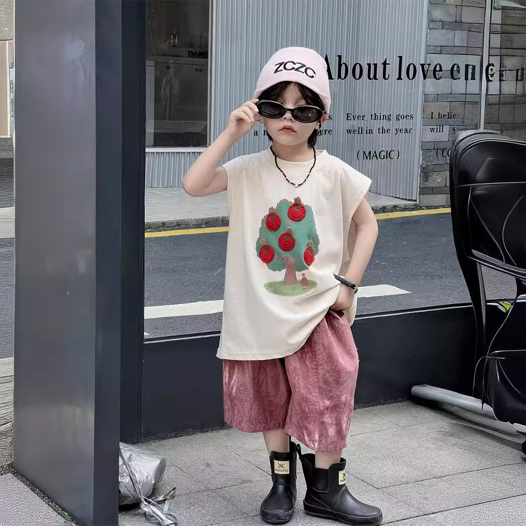 Children’s Vest Summer Sleeveless Top T-shirt Summer Boys and Girls Apple Tree Crewneck Children’s Cute Western Style