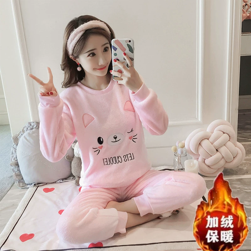 Pajamas Female Fall and Winter Flaspiece Set Installing Warm Coral Velvet Home Winter 2021 new plus velvet thickening