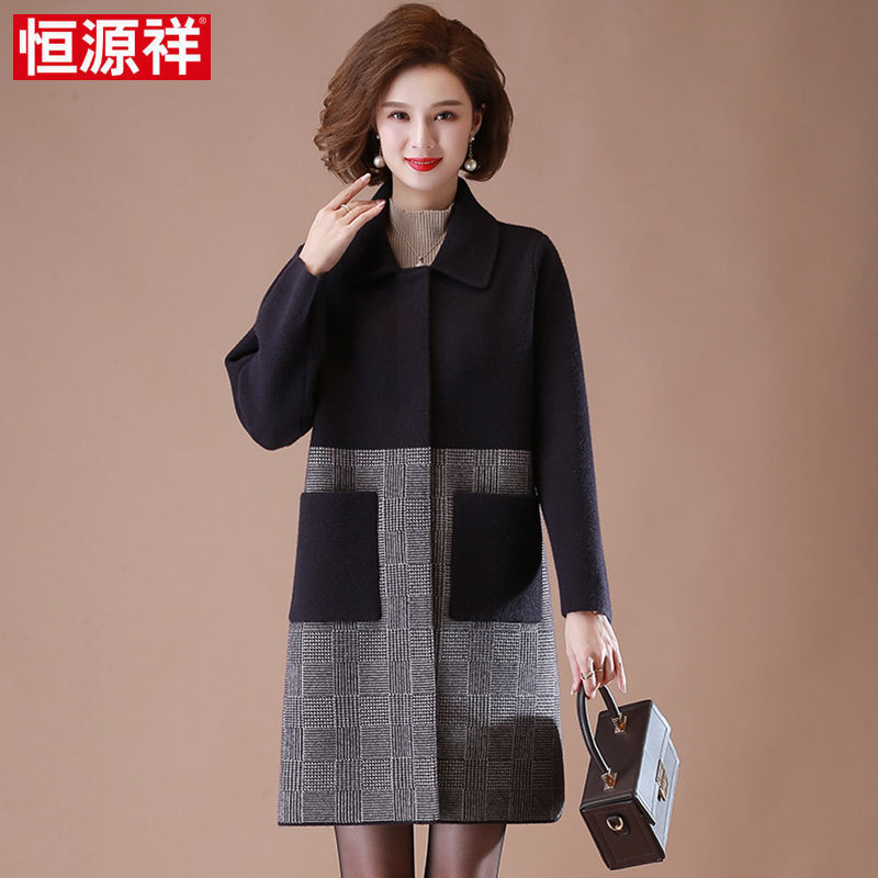 Hengyuanxiang autumn and winter New Mother’s cashmere coat mid-length plus size 40-year-old 50 middle-aged and elderly women’s clothing thickened