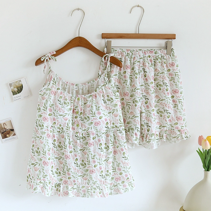 Female thin sleeveless suspender shorts Loose cotton pajamas