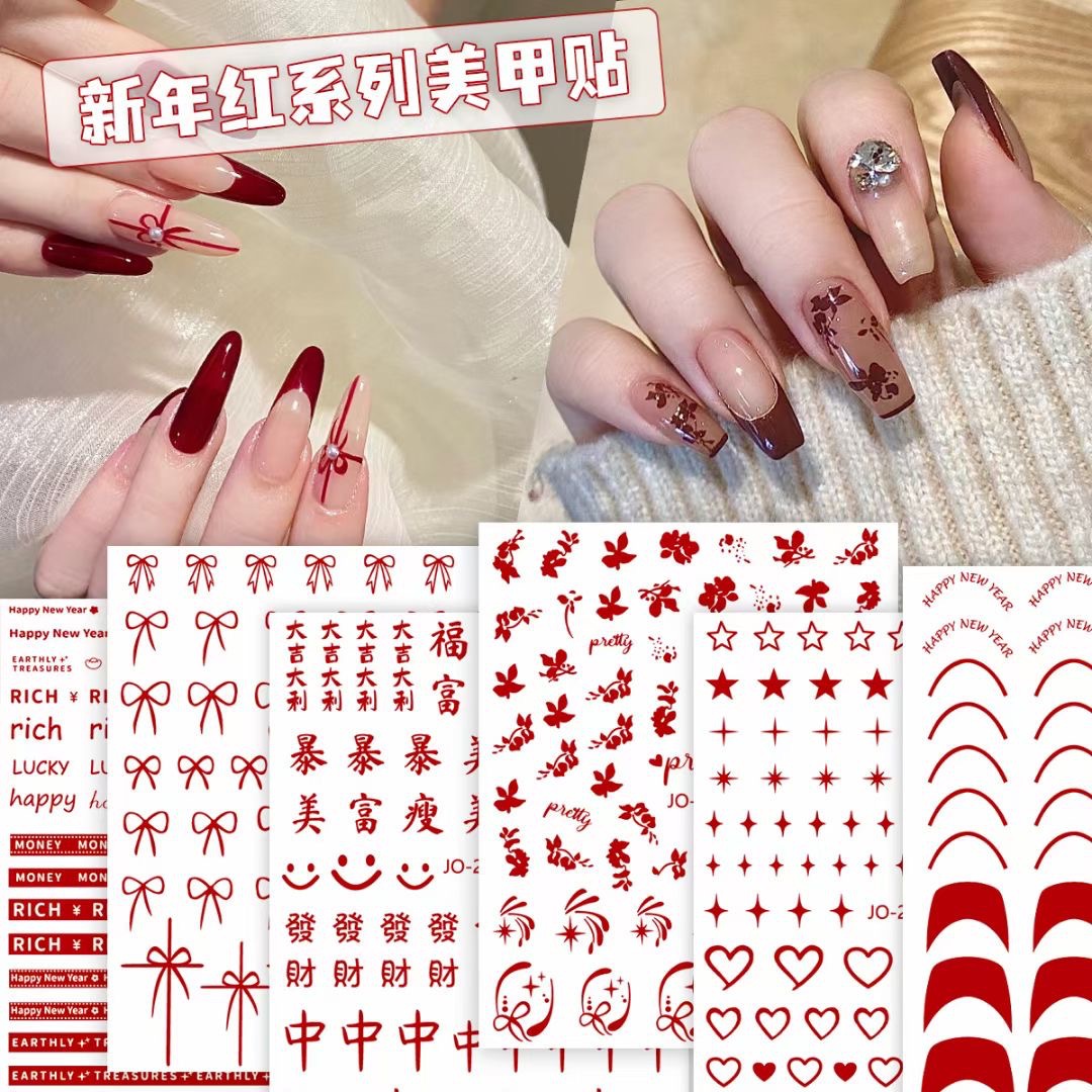 Cross-Border New Year nail stickers Valentine’s Day Red love bow adhesive festive flower National style nail stickers