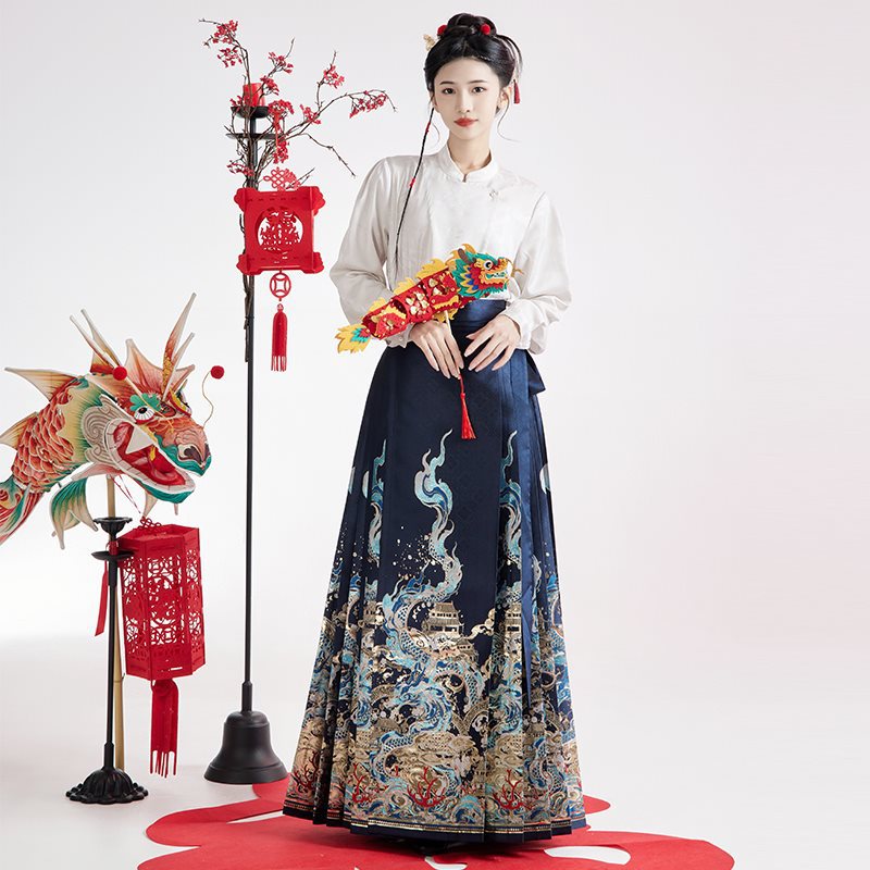 Xinghe Han Song [Dragon Bleu] Horse Face Skirt Imitation Makeup Flower Weaving Gold Han Clothing suit Guofeng 2024 Dragon Year Skirt