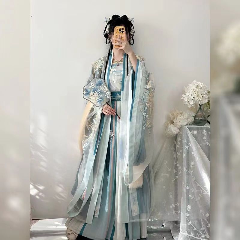 No Hope Pavilion [Butterfly Love Flower Language] Waist-length Sleeve Shirt Sling Pleated Skirt Embroidered Song-made Adult Hanfu Women’s Full Set