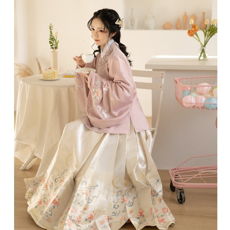 Yunzang Moon Embroidery Moon Picking Up Moon Ming Chinese Clothing Women’s Short Jacket Horse Face Skirt Suit Daily Guofeng Adult Pink Top Spring