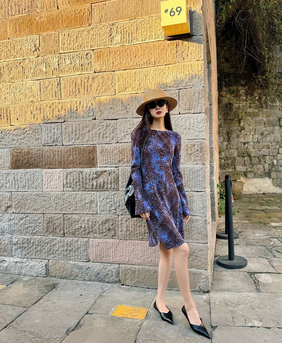 High Waist Butterfly Printed Chiffon Mid-Length Skirt 8852 plus size Retro High Waist Hip Printed Skirt