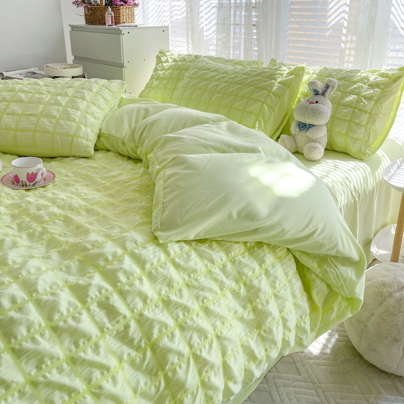 Solid color wash cotton dormitory single three-piece set of bubble yarn