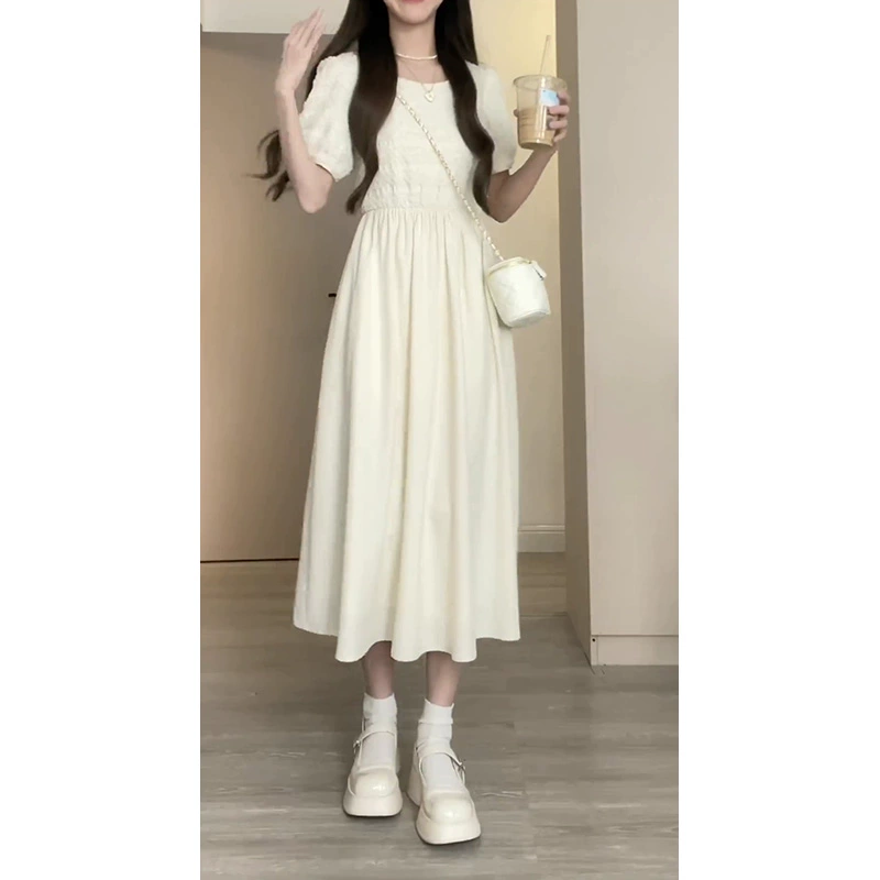[two-piece set] girlfriends French short-sleeved top women’s short high waist A- line long skirt fashion suit