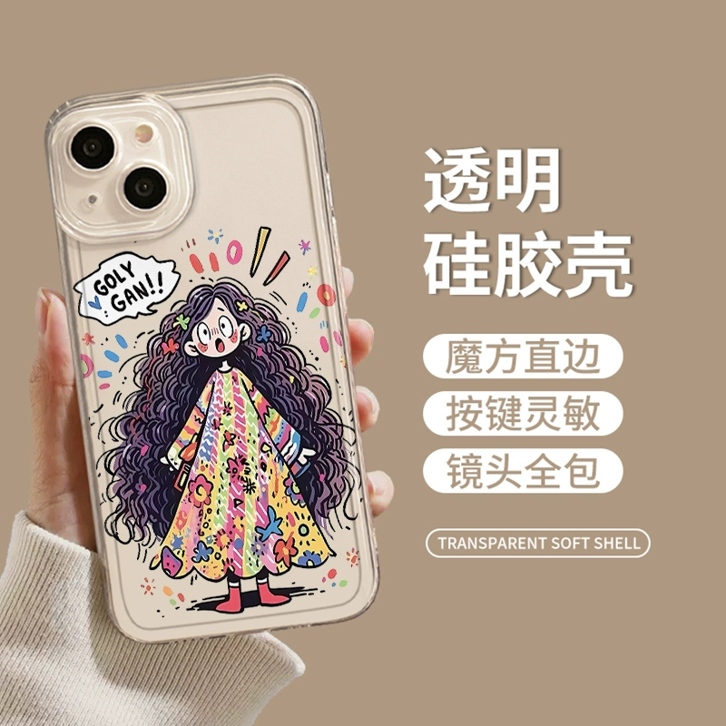 Apple Curly Girl Wow Transparent Cute Phone Case