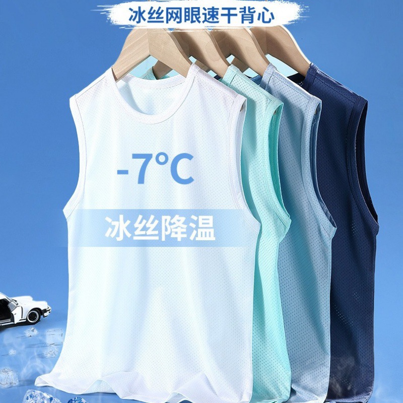 Children’s Vest Ice Silk Summer Thin Quick-drying Sleeveless T-shirt for Boys Large Summer Casual Sports Casual Sleeve Mesh