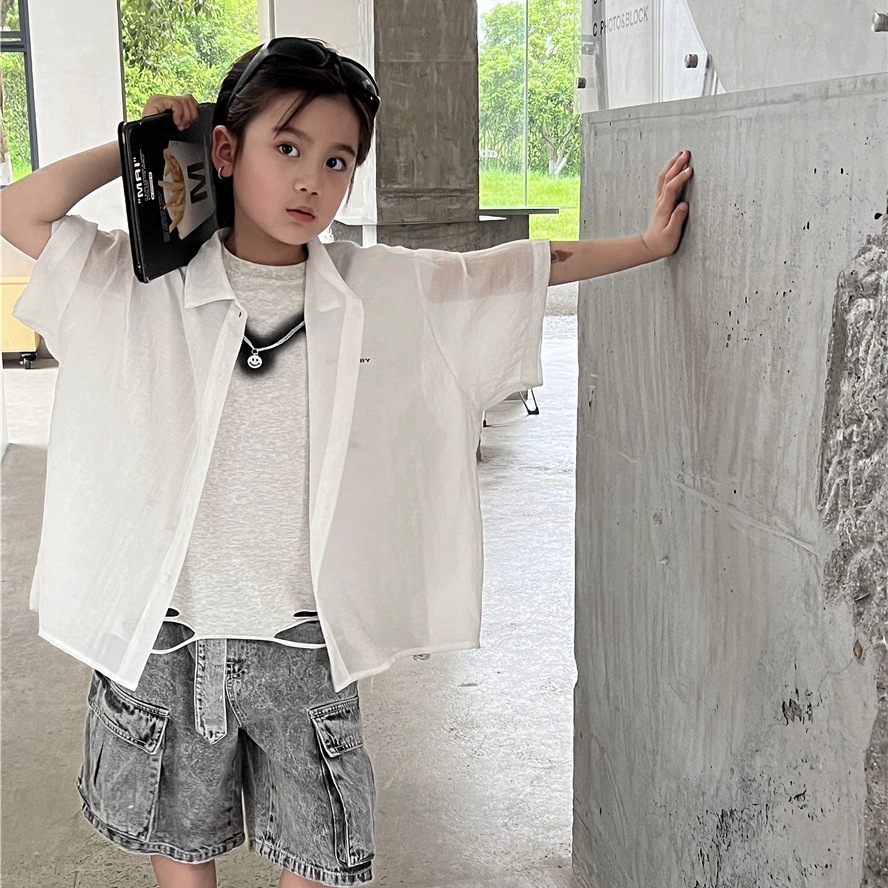 2024 summer children’s short-sleeved shirt tulle oversize boys and girls baby short-sleeved sunscreen shirt western style