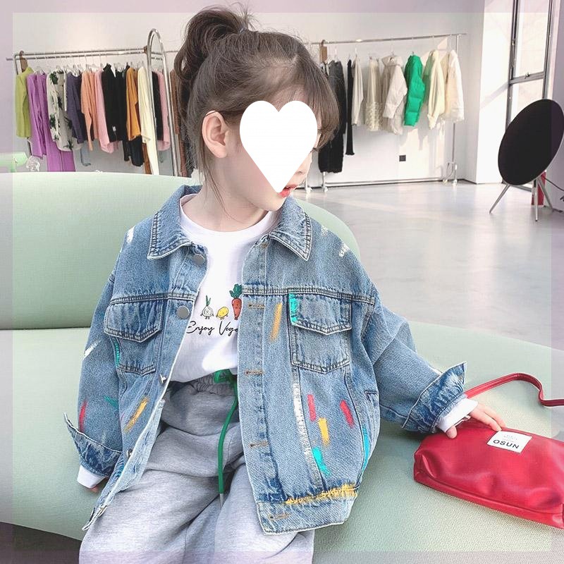 Girls’ Denim Weaving Coat 2024 Spring New Korean Children’s Casual Western Style Coat All-match Baby