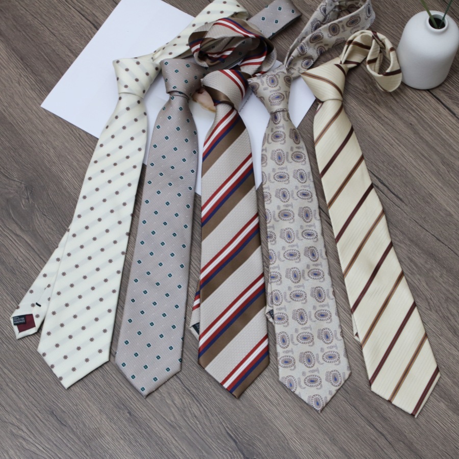 Tie men’s British retro light color pattern 8CM formal wear professional business casual beige striped all-match White
