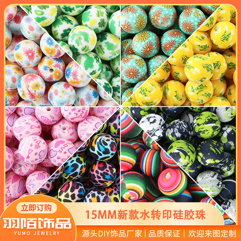 Factory spot water transfer silicone beads baby gum pacifier chain round bead accessories loose beads color leopard beads