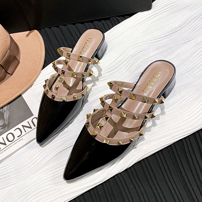 Summer fashion thick heel pointed toe large size 41 to 43 half slippers