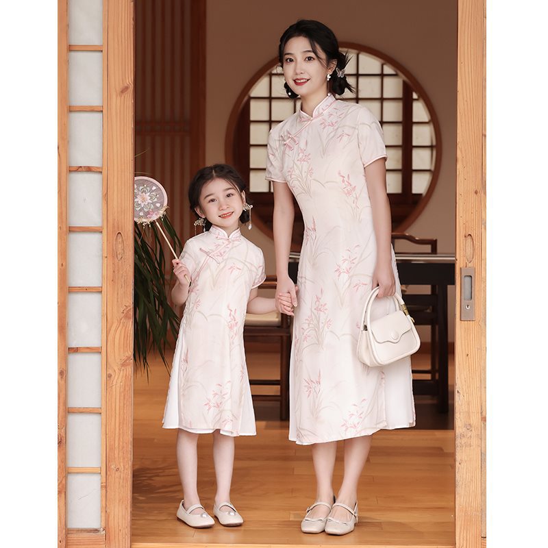 Pink Parent-Child Cheongsam Parent-Child Dress Mother-Daughter 2024 New Improved Chinese Hanfu dress Chinese Style Girl Summer