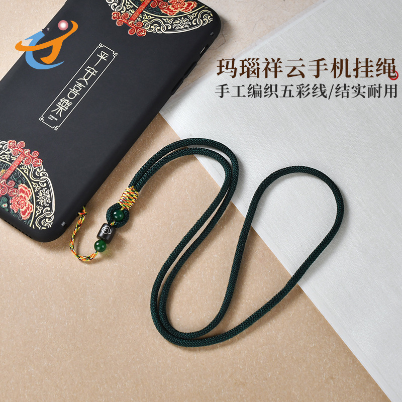 Factory direct supply handmade colorful line red agate mobile phone lanyard neck anti-lost U disk mobile phone pendant strong and durable