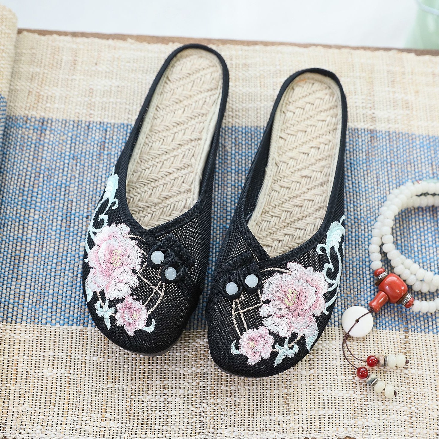 Mesh Shoes Full Mesh Linen Insole Embroidered Slippers Flat Slippers 2022 Women’s Shoes Sandals