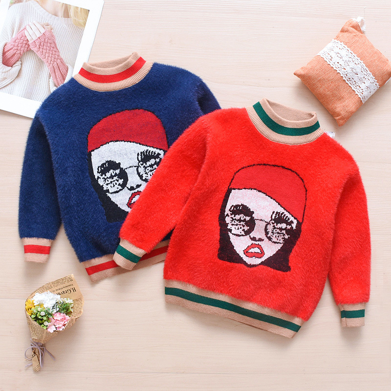 2023 Children’s Winter New Korean-style Long-sleeved Girls’ Sweater Crewneck Pullover Mink Velvet Cartoon Sweater