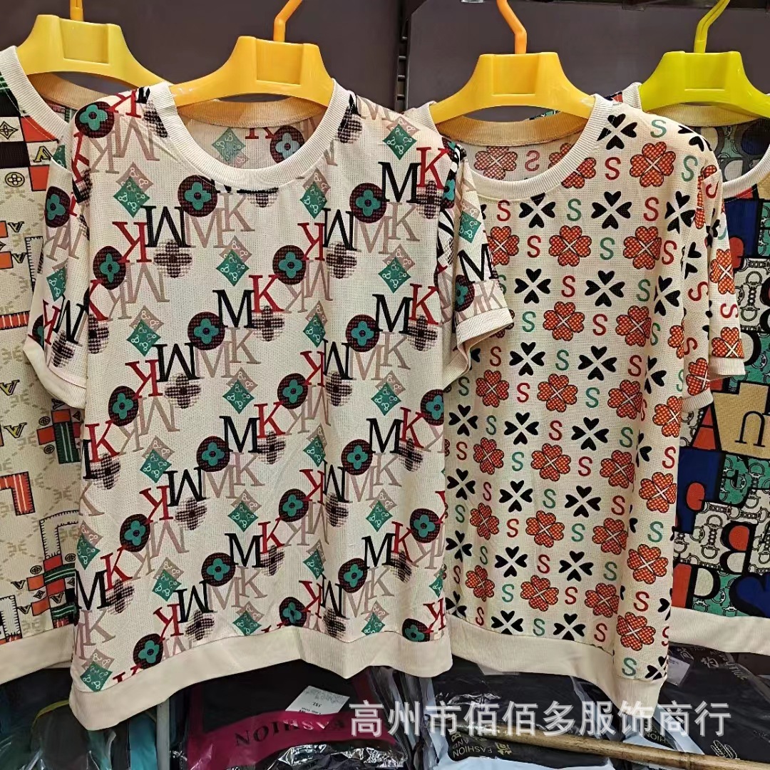 2023 Summer new mother thread edging hole cloth short sleeve T-shirt grandma clothes wholesale supply