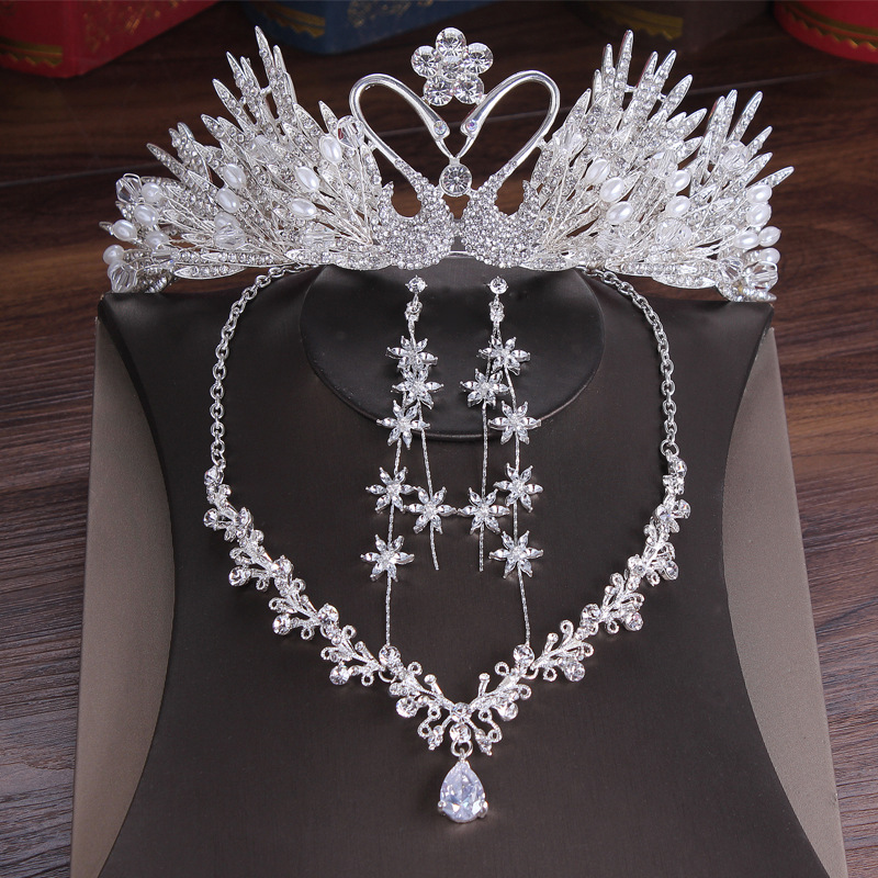 Hot sale bridal headdress wedding dress hair accessories crown necklace earrings three-piece wedding accessories spot wholesale