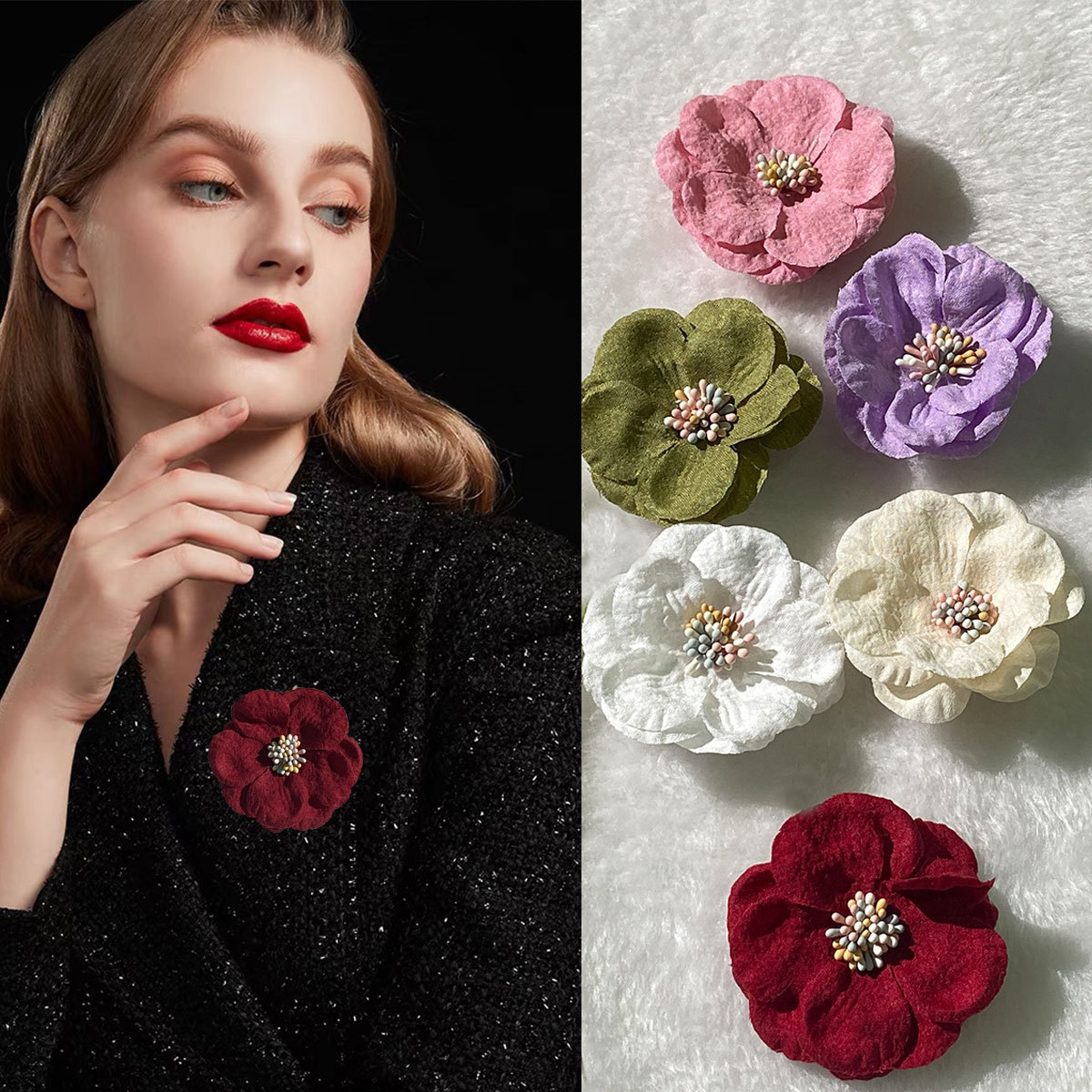 2023 ins style fabric flower corsage pin handmade diy accessories hair accessories headdress accessories wholesale cross-border