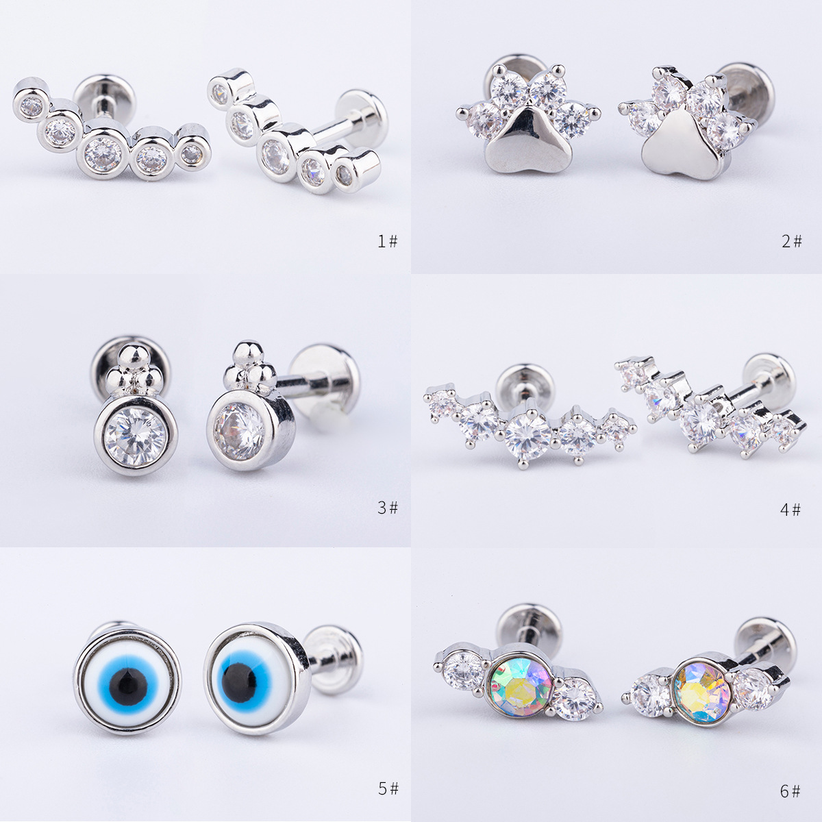 1.2mm thick 316L titanium steel copper gold plated 5A zircon ear bone nail lip ring lip nail earring ear nail ear bone nail