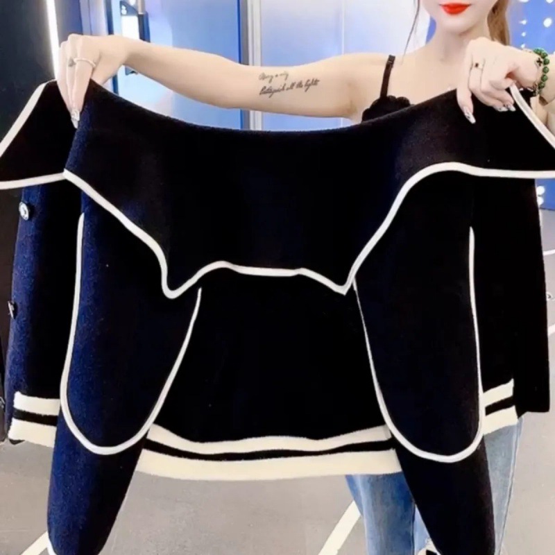 Korean style, age-reducing, pink striped knitted sweater, cardigan jacket, women’s autumn new style, unique and chic top