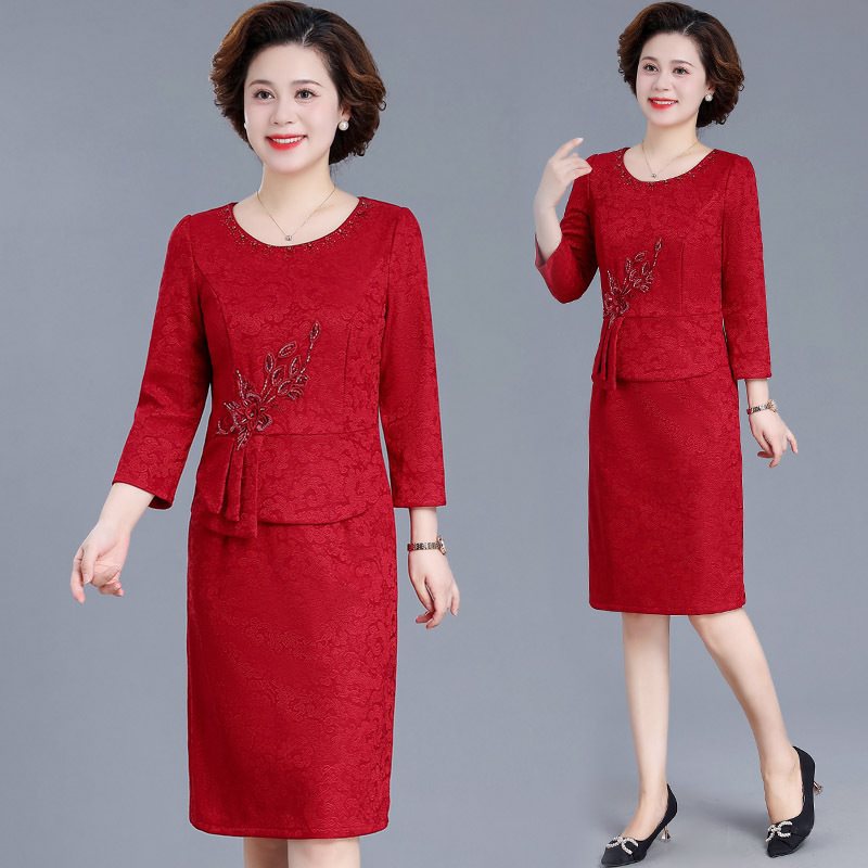 Mother’s Autumn Dress Temperament dress Middle-aged and Elderly Women’s Dress Western Style Noble Wedding Dress Xi Mother-in-law Wedding Dress