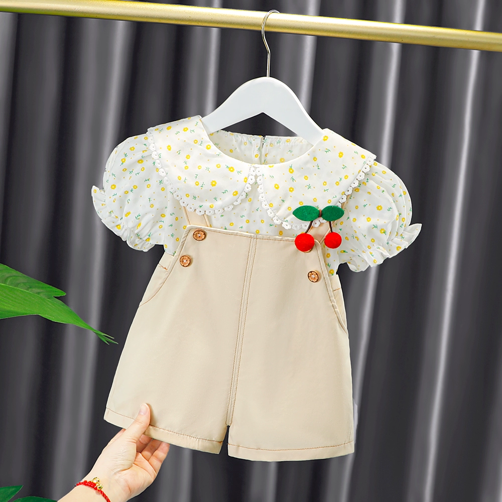 Girls summer suit 2024 new overalls 3 children’s short-sleeved 4 year old two-piece baby girl clothes summer suit