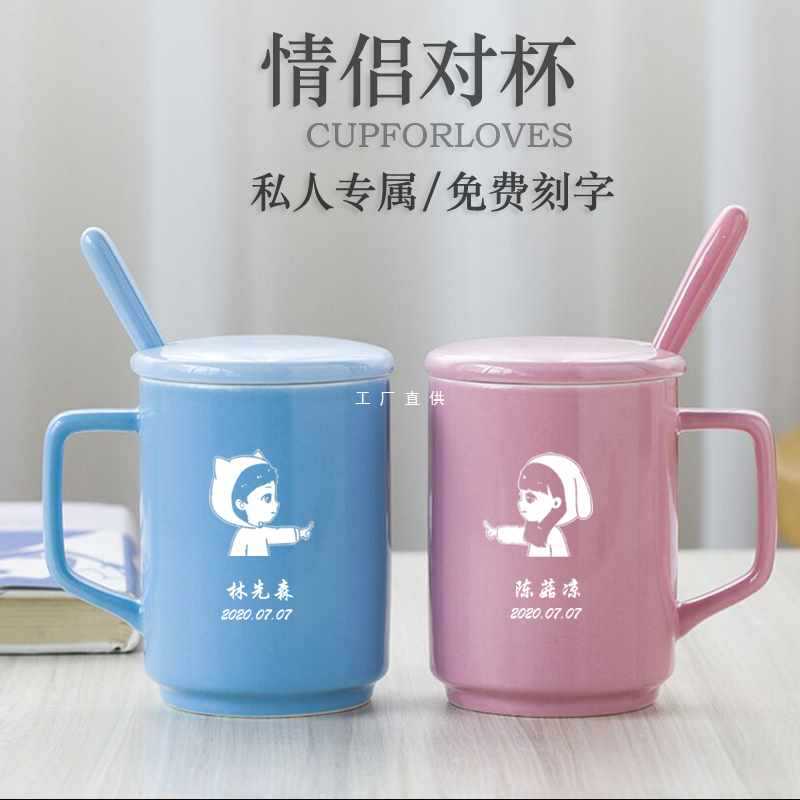 GD53 men’s and women’s Valentine’s Day gift ceramic couple Cup a pair with lid spoon coffee cup custom water Cup lettering