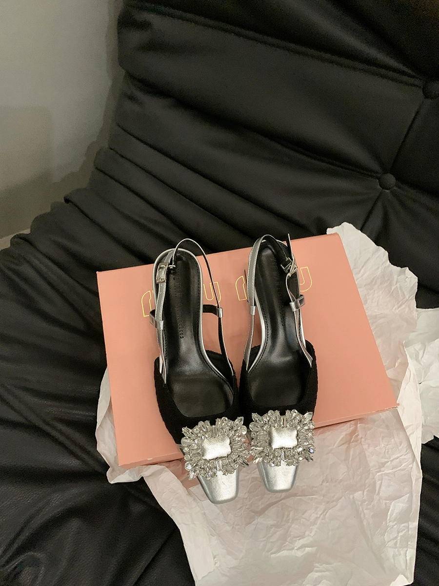 Stunning silver ladylike thick heel rhinestone commuter sandals