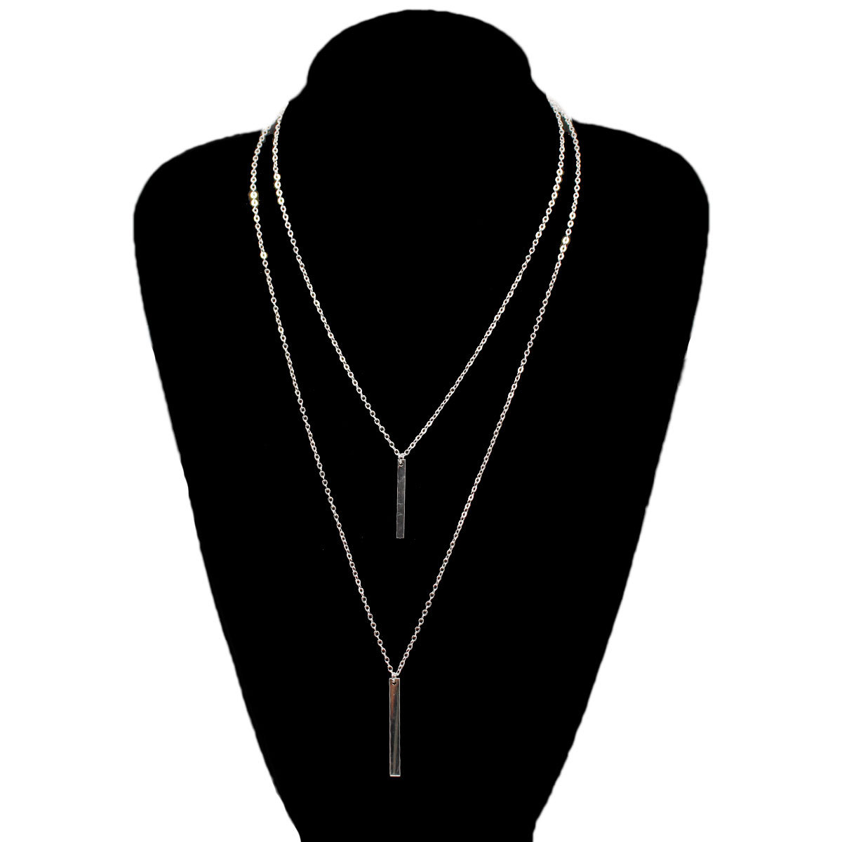European and American Cross-border Jewelry Double-layer One-character Long Necklace Women’s Simple Fashion Pendant