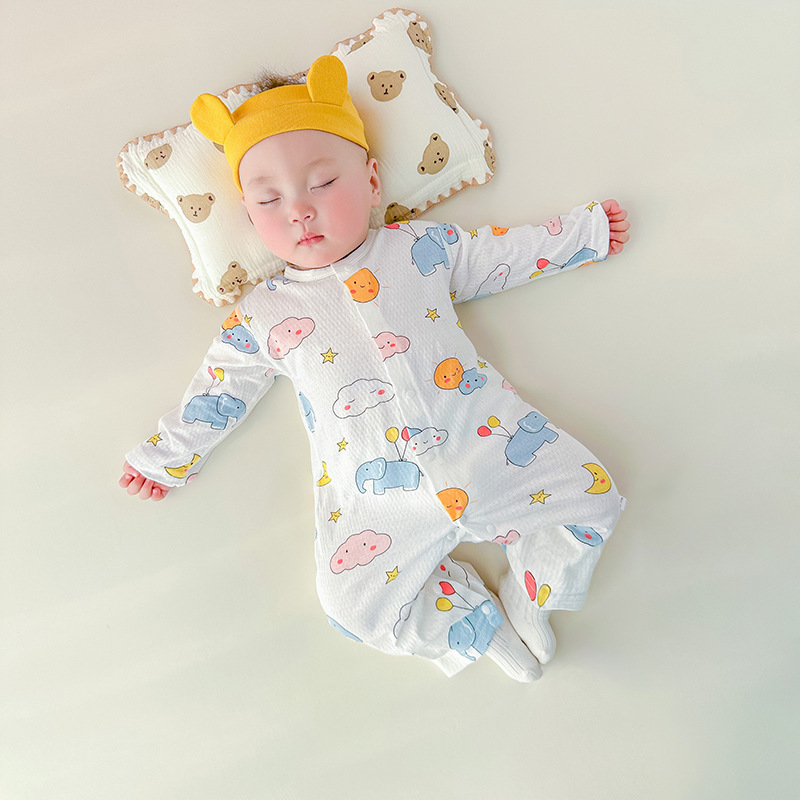 Baby jumpsuit summer thin boneless newborn long sleeve air conditioning clothing cotton pajamas baby Summer Home clothing