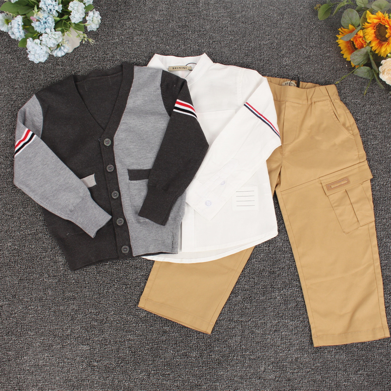 Factory Direct preppy style autumn and winter children’s clothing long-sleeved sweater for boys and girls V-neck cashmere children’s sweater striped open