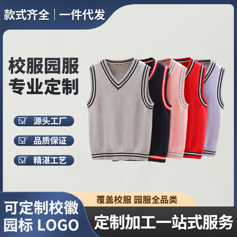 Girl’s vest student class clothes college style vest top middle and big children’s gray sweater children’s knitted school uniform vest