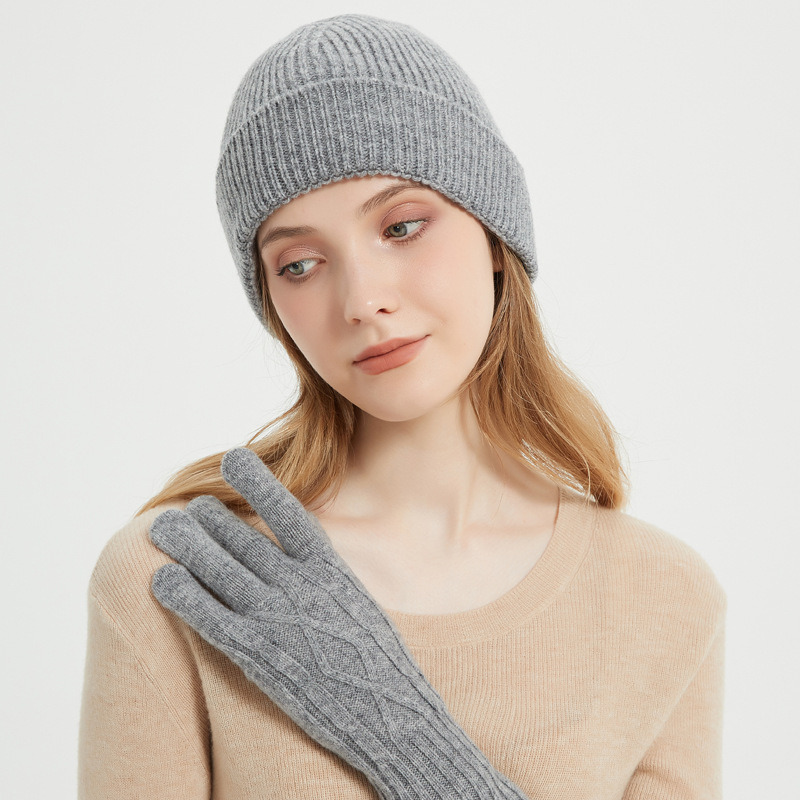 2023 autumn and winter pure wool knitted simple hat solid color men’s and women’s same warm hat gloves cold-proof two-piece set