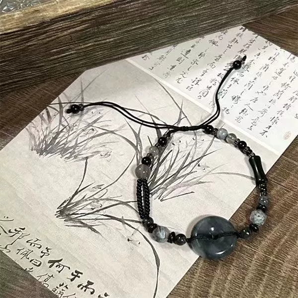 Women’s Peace Button Beaded Black Antique Braided Bracelet