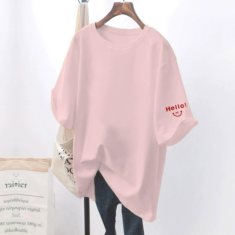 Mid-length pure cotton casual large-size front shoulder short-sleeved T-shirt