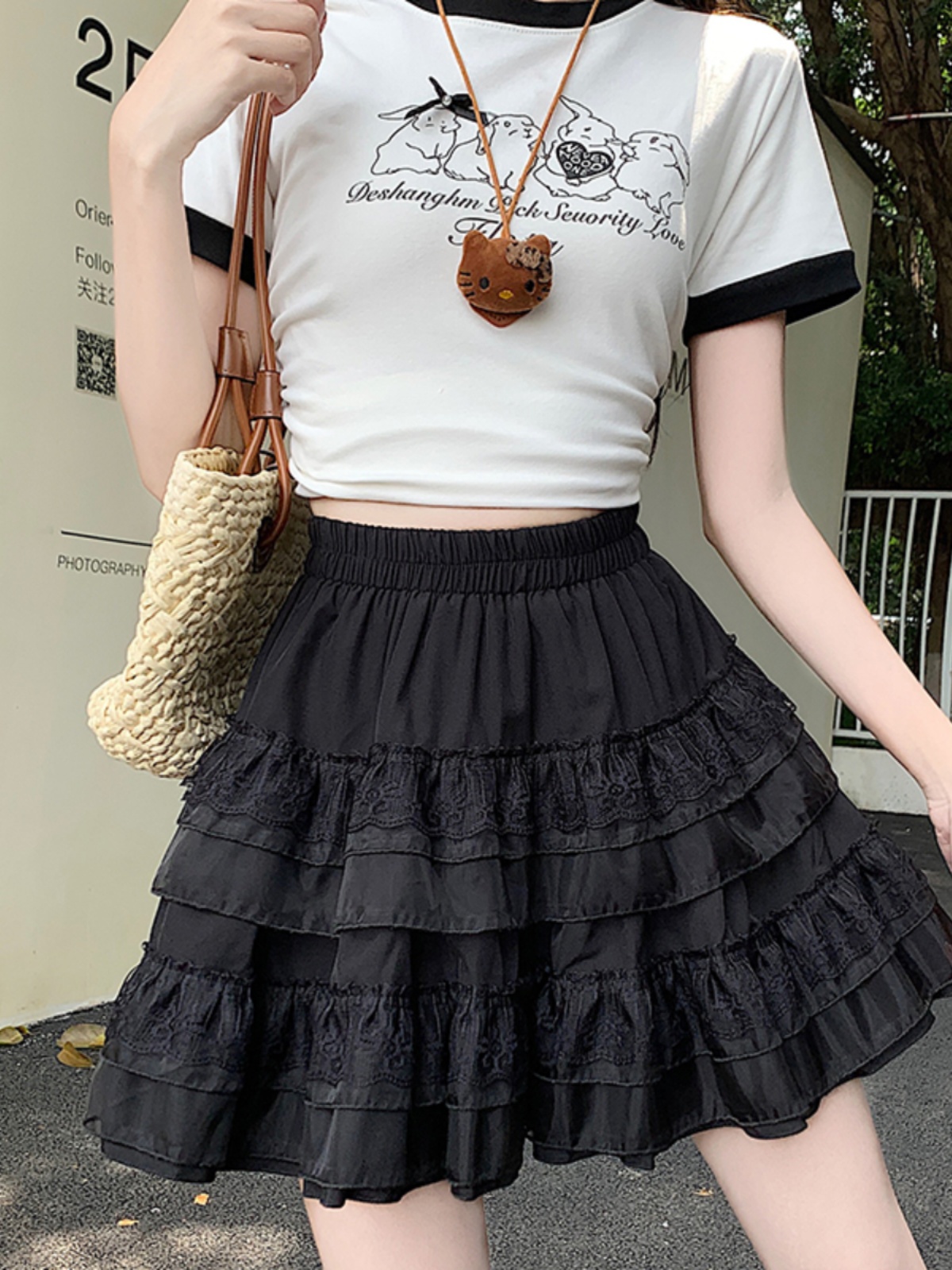 College style fat girl design lace cake skirt