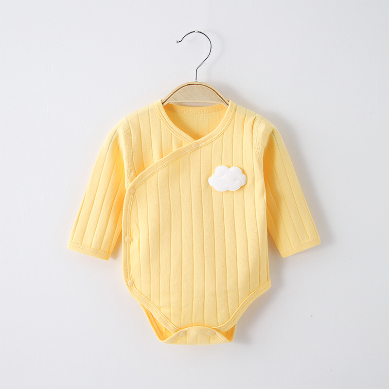 Light Baby Yue Spring and Autumn New Fart Clothes 40 Combed Pure Cotton Soft Triangle Climbing Clothes Double Belly Protecting Snap Button