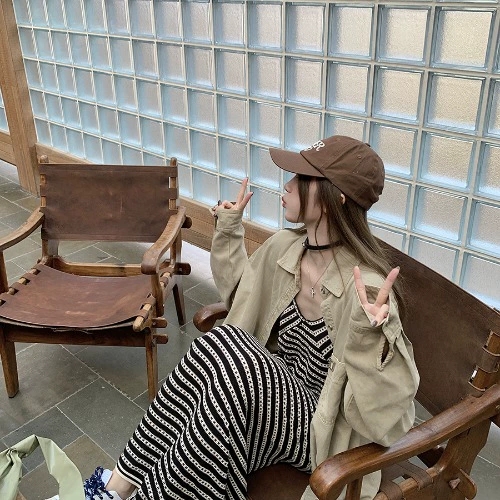 Loose striped knitted suspender dress fashion suit