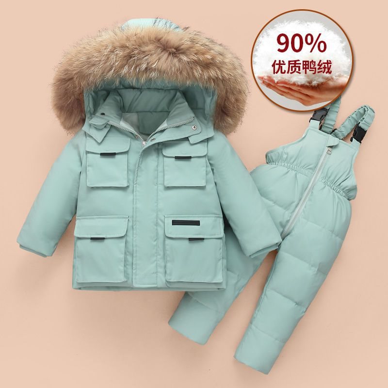 2022 New Bao Men’s Bao Women’s Down Jacket Children’s Outgoing Big Wool Collar Baby Down Jumpsuit Jacket