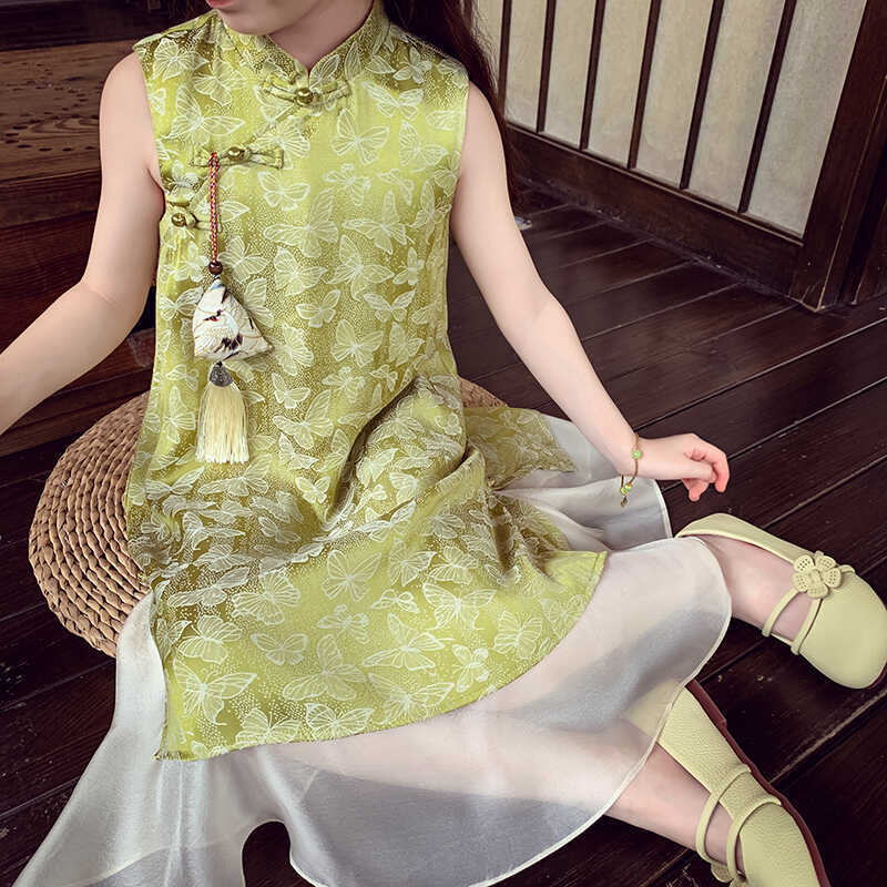 Girls’ New Chinese Cheongsam Skirt Girls’ Vest Skirt Summer Western Style Children’s Clothing National Style Hanfu dress Thin